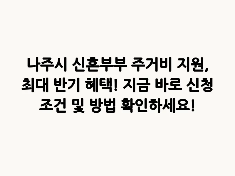 나주시 신혼부부 주거비 지원, 최대 반기 혜택! 지금 바로 신청 조건 및 방법 확인하세요!
