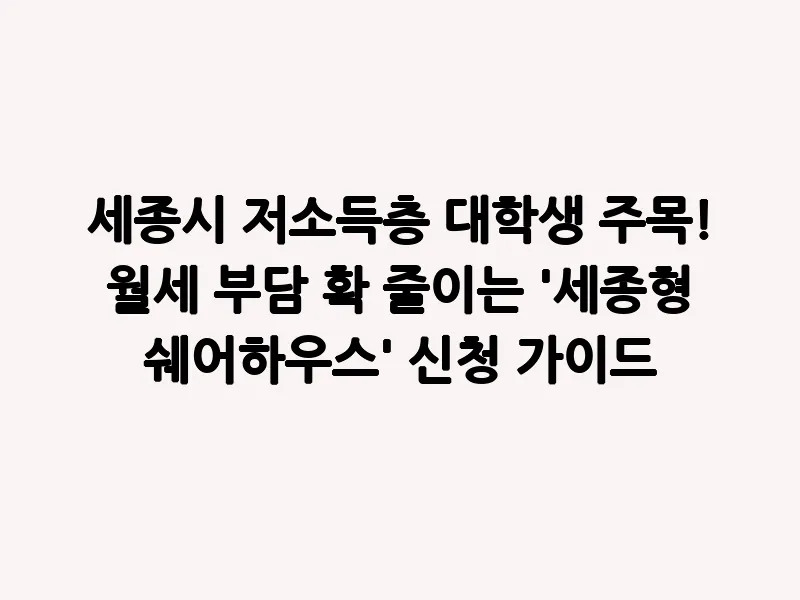 세종시 저소득층 대학생 주목! 월세 부담 확 줄이는 ‘세종형 쉐어하우스’ 신청 가이드