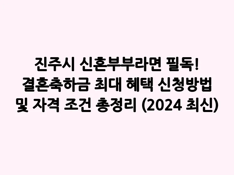 진주시 신혼부부라면 필독! 결혼축하금 최대 혜택 신청방법 및 자격 조건 총정리 (2024 최신)