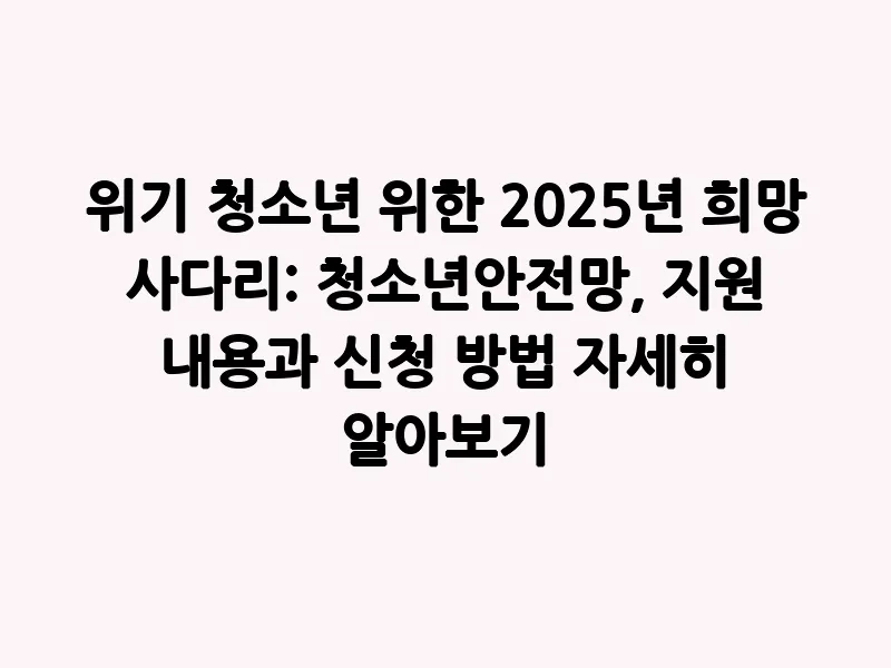위기 청소년 위한 2025년 희망 사다리: 청소년안전망, 지원 내용과 신청 방법 자세히 알아보기