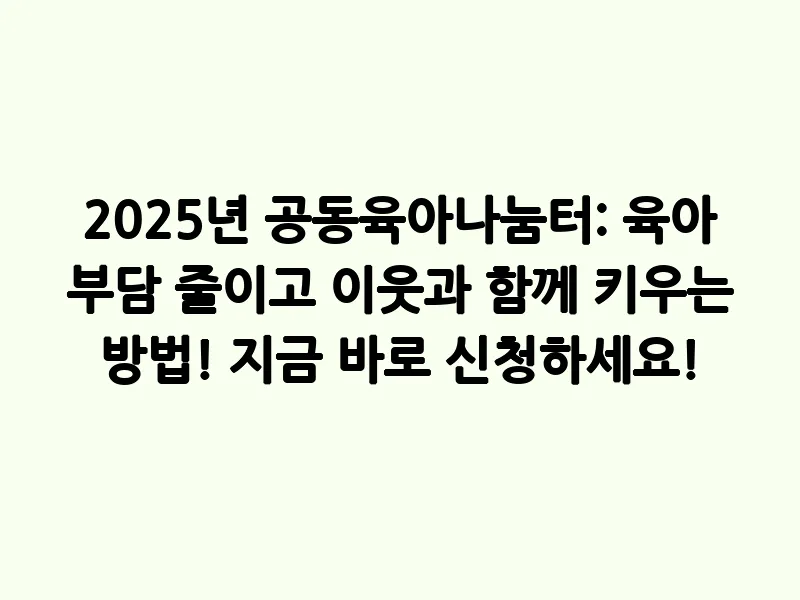 2025년 공동육아나눔터: 육아 부담 줄이고 이웃과 함께 키우는 방법! 지금 바로 신청하세요!