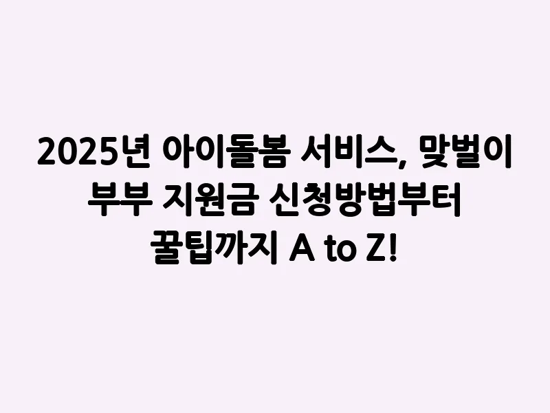 2025년 아이돌봄 서비스, 맞벌이 부부 지원금 신청방법부터 꿀팁까지 A to Z!