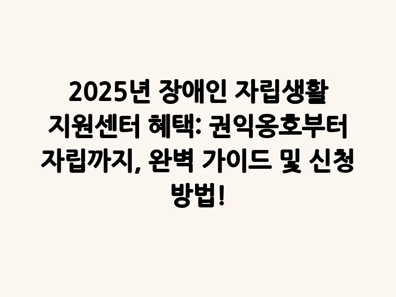 2025년 장애인 자립생활 지원센터 혜택: 권익옹호부터 자립까지, 완벽 가이드 및 신청 방법!